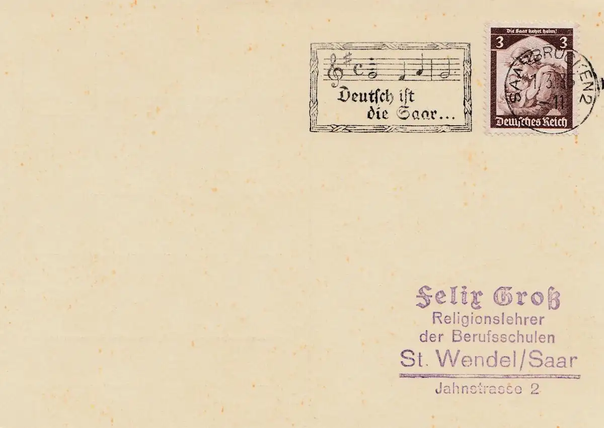 L'allemand est la Sarre 1935 - Notes de clé de note