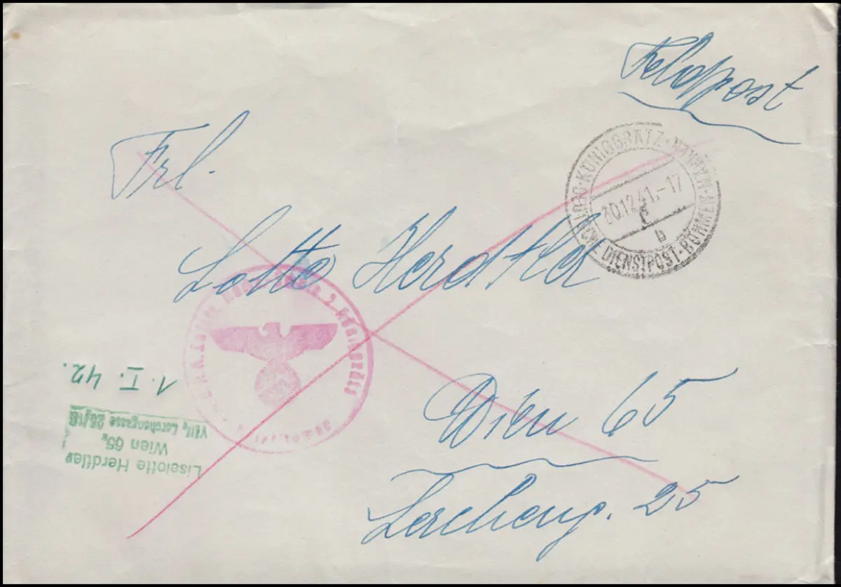 Poste de service allemand Bohême-Mähren KÖNIGHRÜTZ 30.12.41 Écriture de Noël