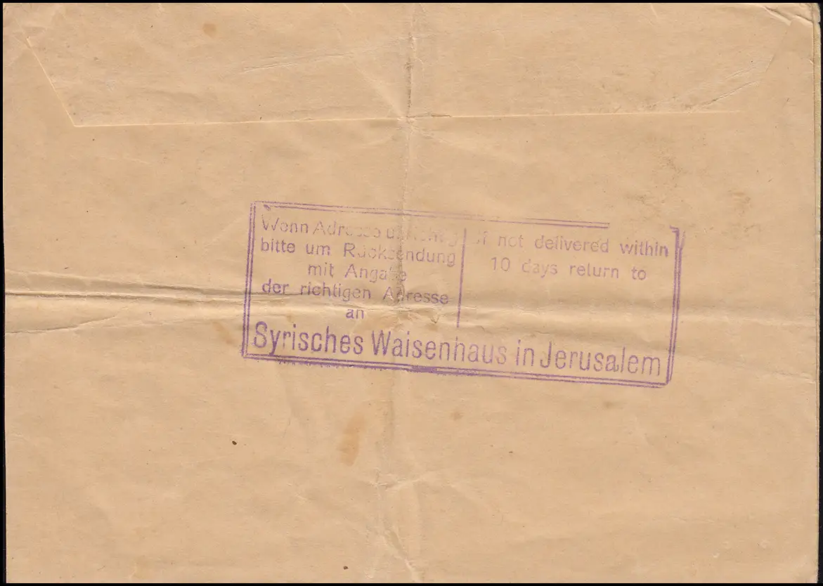 avec cachet d'expéditeur Orphelina syrien à Jérusalem, plié selon le schéma Numéro de catalogue: S6 Examen: original Référence produit: 00000000026664