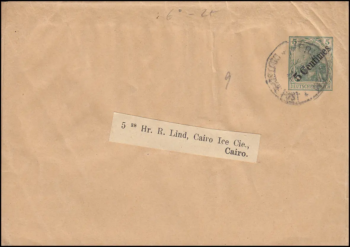 Deutsche Post Jérusalem Tampon du jour 1911 sur Streifband S 6 vers Cairo