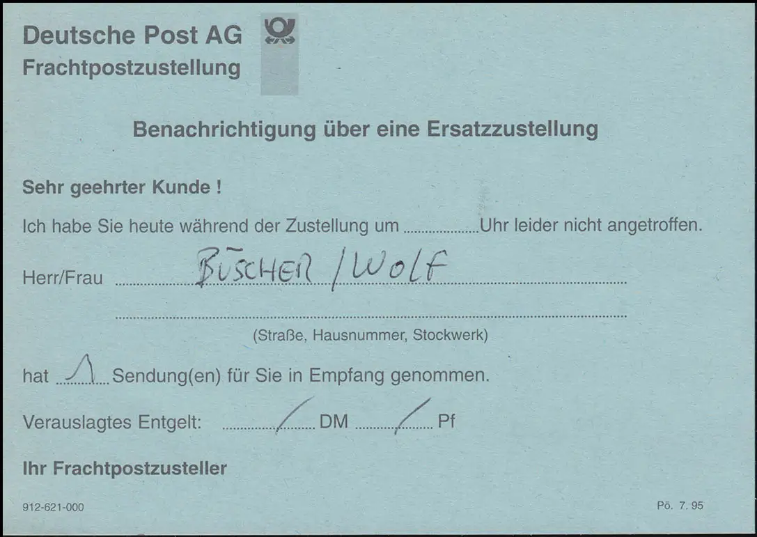Deutsche Post Livraison de fret: notification d'une livraison de remplacement
