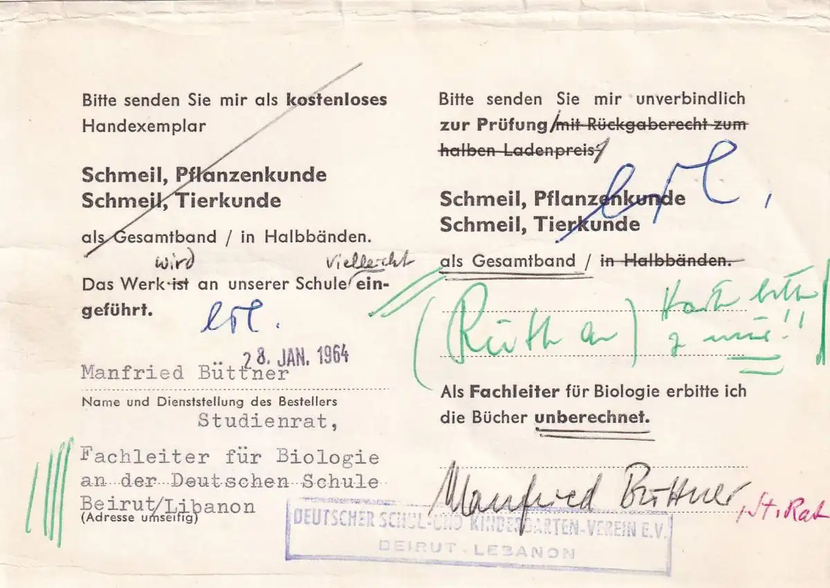 Deutsche School, Kindergarten Beyrouth 1964, post card to Heidelberg, air mail