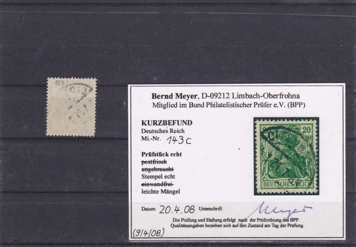 Reich allemand: MiNr. 143c, cacheté, BPP résultat