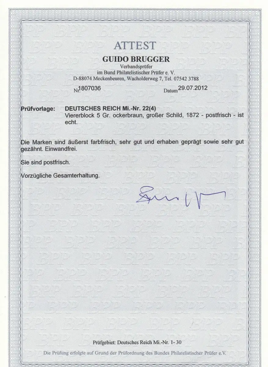 Reich allemand, Min. 22 - Quadruple bloc, post-free, BPP Attest