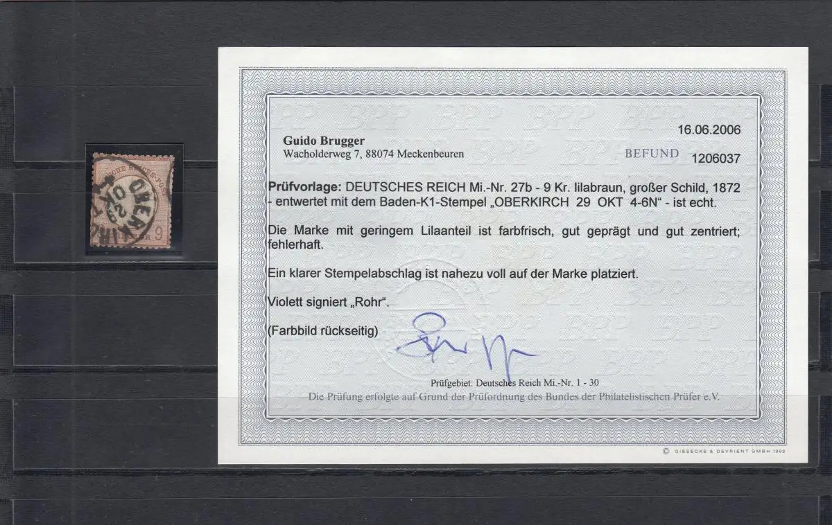 Reich allemand: Min° 27b, Tampon Oberkirch, BPP résultat