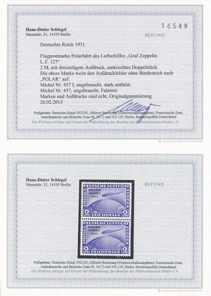 Reich allemand: MiNr. 457/457I, BPP Photo résultat