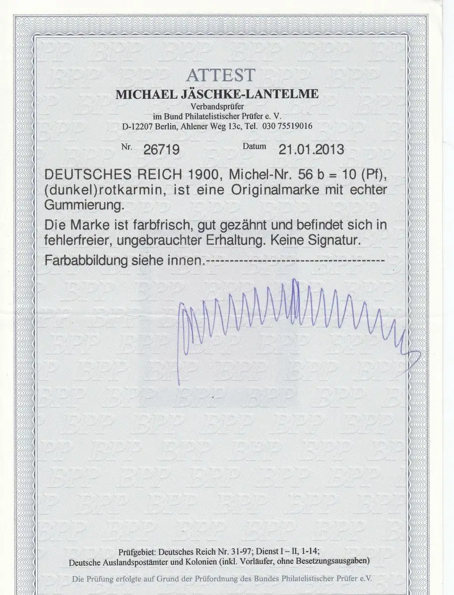 Reich allemand: Min. 56b, BPP Attest, inutilisé