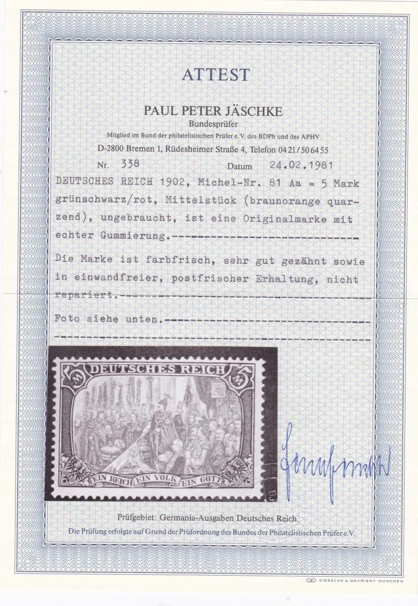 Reich allemand: Min. 81 Aa, *, BPP Attest