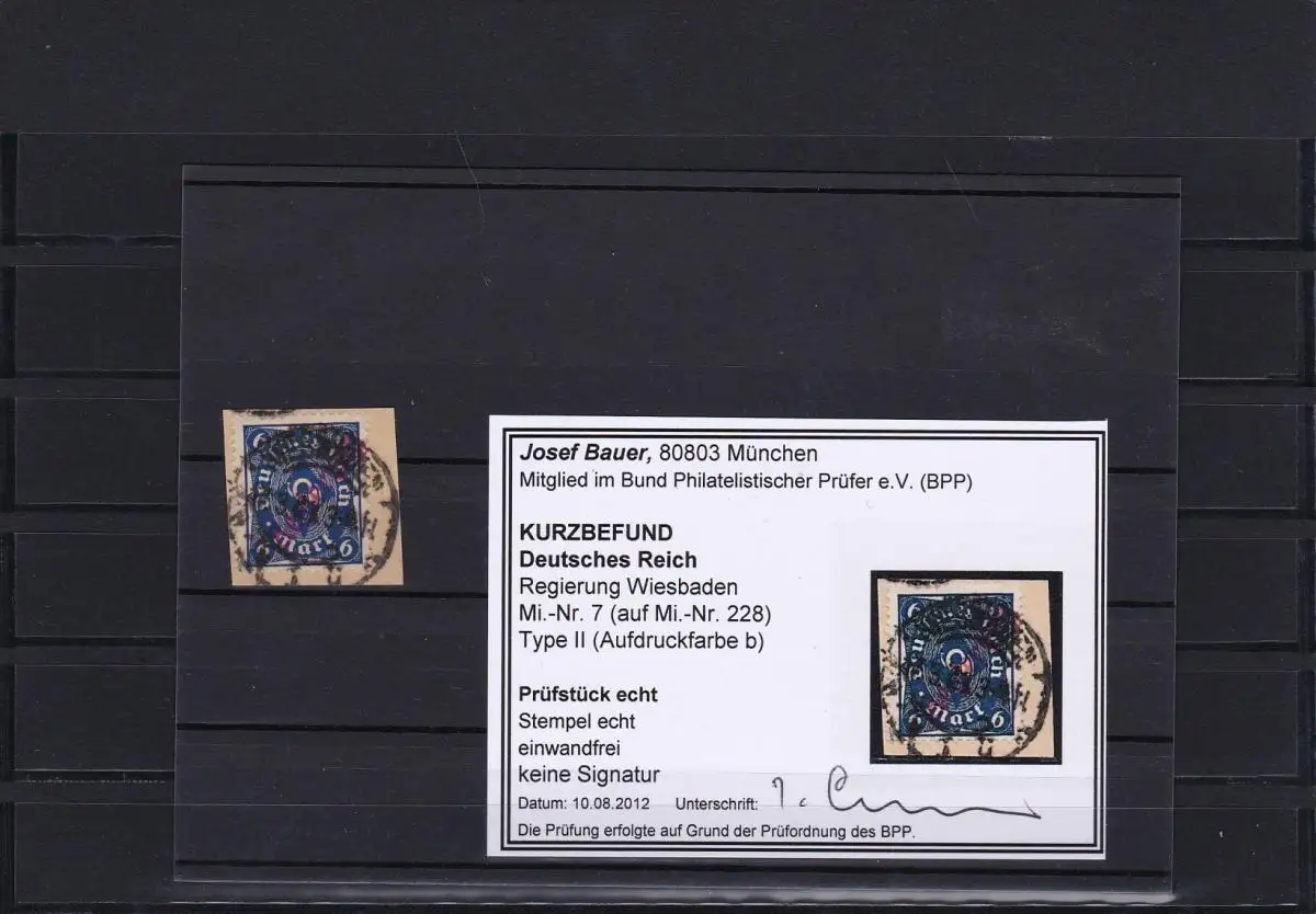 Reich allemand: gouvernement Wiesbaden,MiN° 7, Type II,b, cacheté, BPP résultat