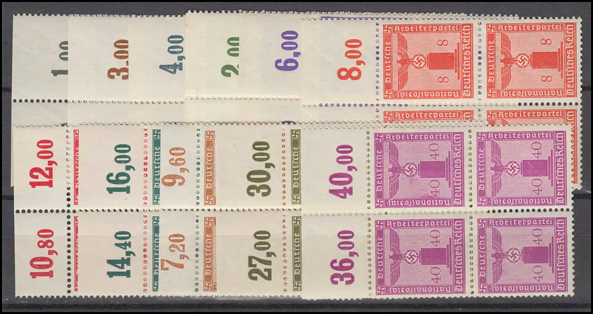 Service 155-165 kp. Ensemble: 11 valeurs sous forme de blocs de quatre OR, non pliés, **