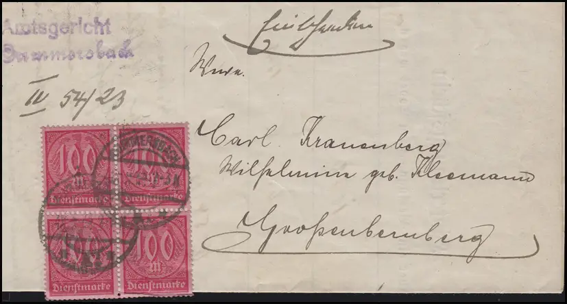 Service 74 chiffres 10x 100 Mark MeF Cour de l'Amtsgericht GUMMERSBACH après Grossebernberg