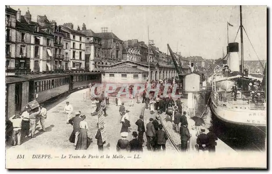 Dieppe - Le train de Paris a la Maile - bateau Cartes postales