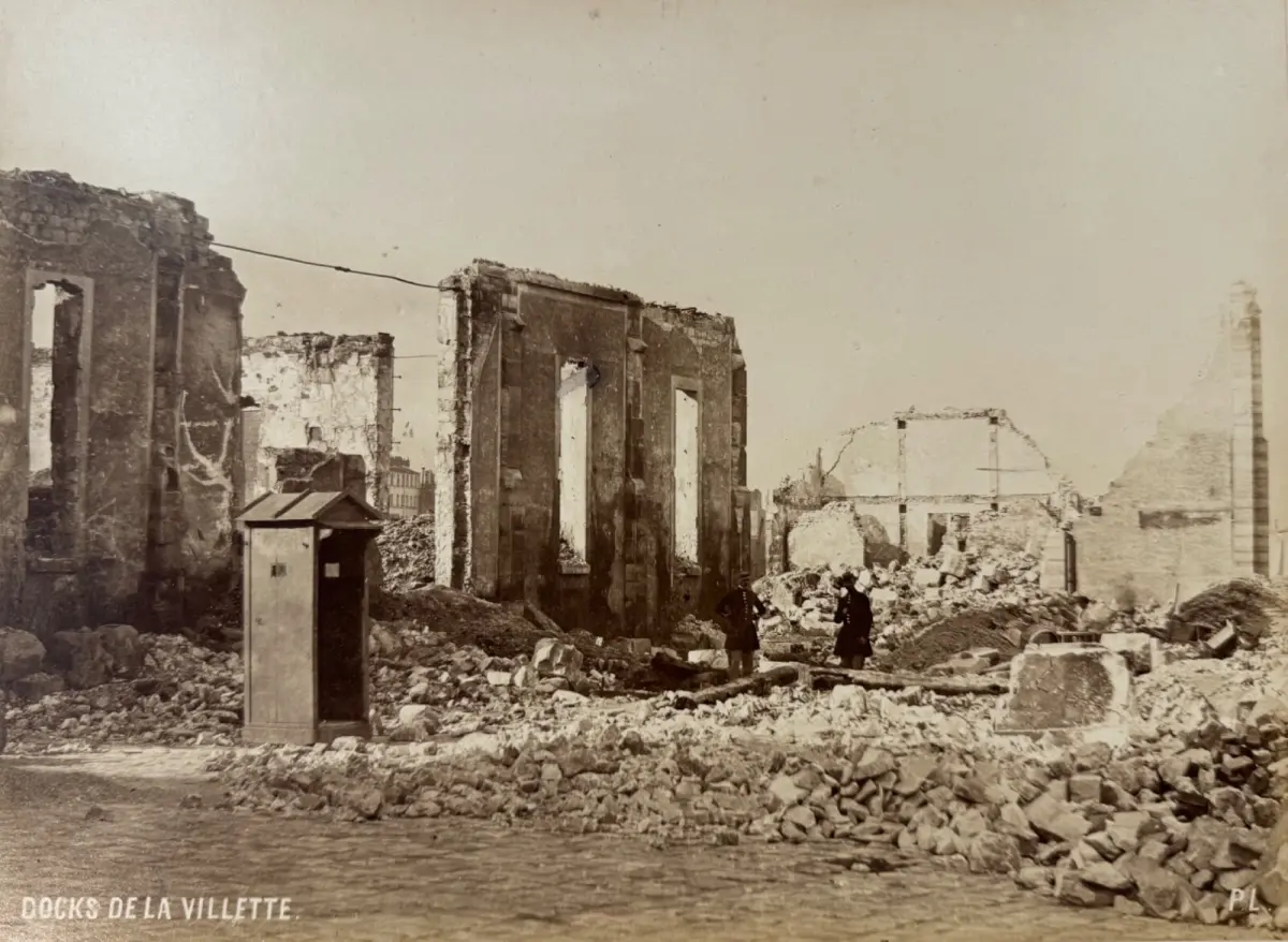 Docks de la Villette, Ruines de la Commune de Paris par Paul LOUBERE (actif 1860-1890).