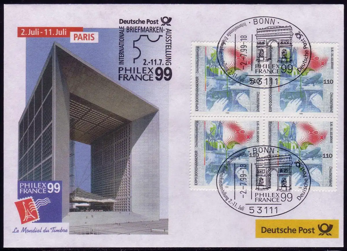 Document d'exposition n° 41 PHILEXFRANCE Paris 1999, SSt Bonn 2.7.99