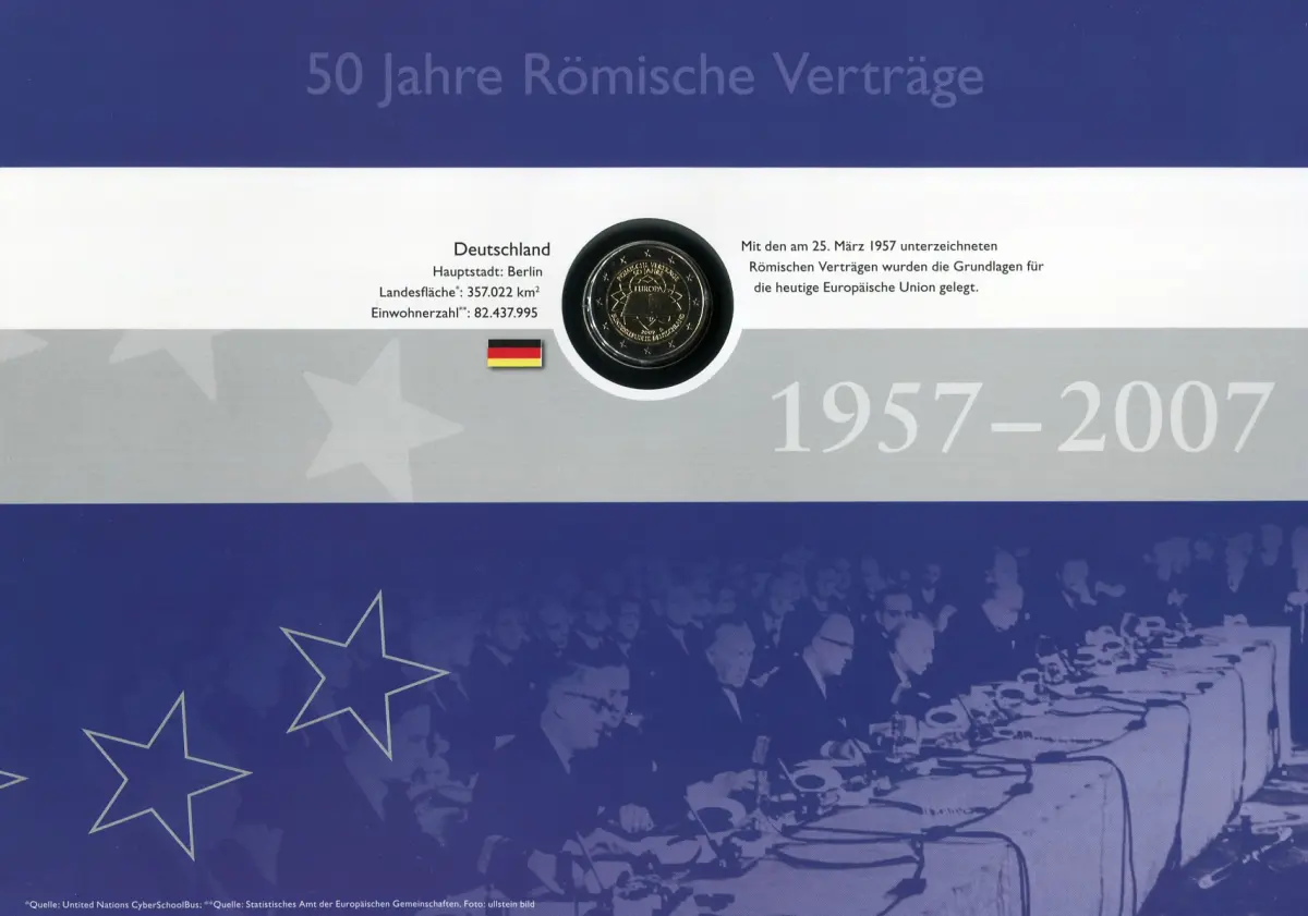Documentation DIN-A4 avec pièce commémorative allemande de 2 euros pour le Jubilé de 50 ans Traité de Rome avec le timbre spécial 2593 comme marque unitaire (frais de poste **) et comme feuille de dix / feuille avec ESSST BERLIN 1.3.2007 Numéro de catalogue: 2007 Examen: original Numéro d'article: 00000000015986>p>Remarque: Cet article n'est disponible qu'une seule fois. Vous recevrez exactement l'élément illustré.