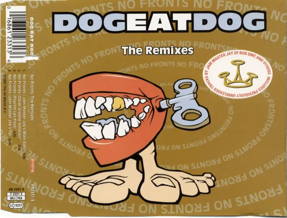 CD Single Dog Eat Dog - No Fronts, RMXes; CutOut, Zustand CD VG+ Hülle VG+; Made in Netherlands 1995 Roadrunner RR 2331-3, Tracks Jam Master Jay's Main Edit 3:45, Clean Greene Vers. 4:05, Psycho Les Pass 4:05, Jam Master Jay's TV 4:04