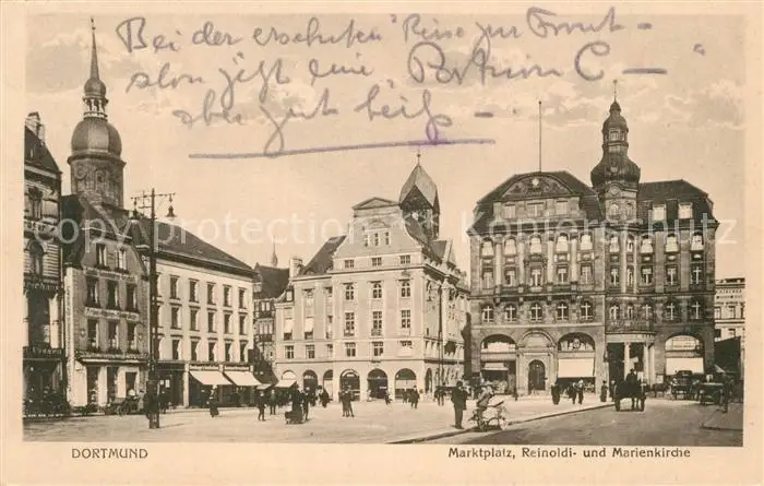 Dortmund Marktplatz Reinoldi und Marienkirche Dortmund postalisch gelaufen 1917 Erhaltung siehe scans [WerneD78] WernPID7