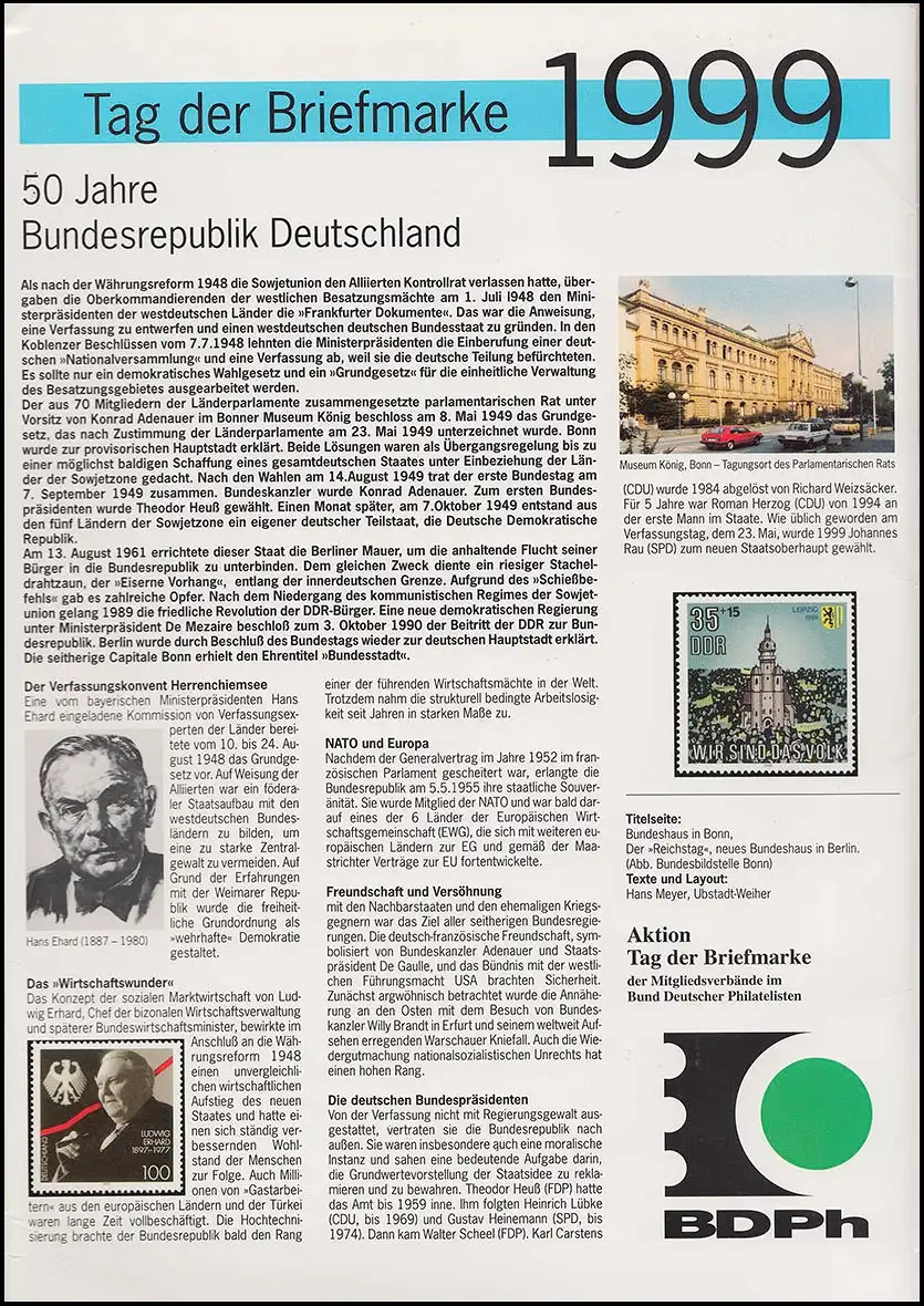 Dossier de pose BDPh Journée du timbre 1999: 50 ans République fédérale d'Allemagne