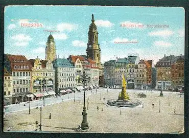 Dresden. Altmarkt mit Kreuzkirche. Rathausturm. Germaniadenkmal. - Nicht gelaufen. Ca. 1910. (NPLZ 01000)