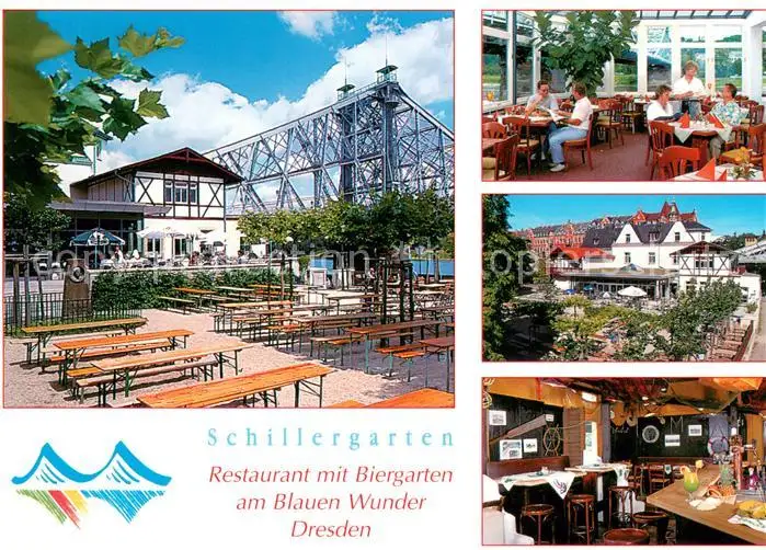 Dresden Schillergarten Restaurant Biergarten am Blauen Wunder Loschwitzer Bruecke Dresden postalisch nicht gelaufen nach 1965 Erhaltung siehe scans [FriedD77] Frierer
