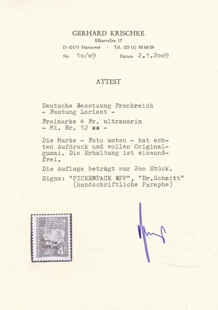 France: Forteresse Lorient: Min. 12, frais de port **, édition 200