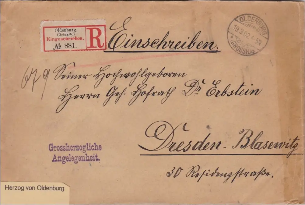 Duc d'Oldenburg, recommandé pour Dresde-Blasewitz 1902
