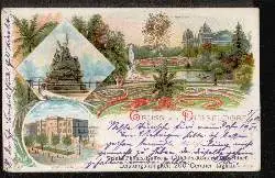 Düsseldorf. Gruss aus.. - Gelaufen 1901. Werbung: Trink Phönix Kaffee a.d. Phönix Rösterei. Düsseldorf. Leistungsfähigkeit 200 Centner zäglich. F. Muschel. Düsseldorf. (NPLZ 40000).