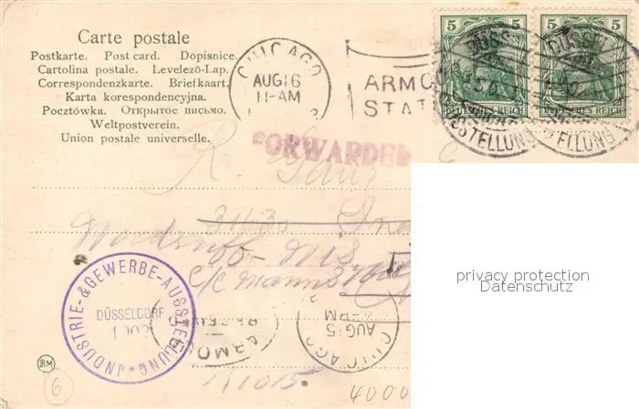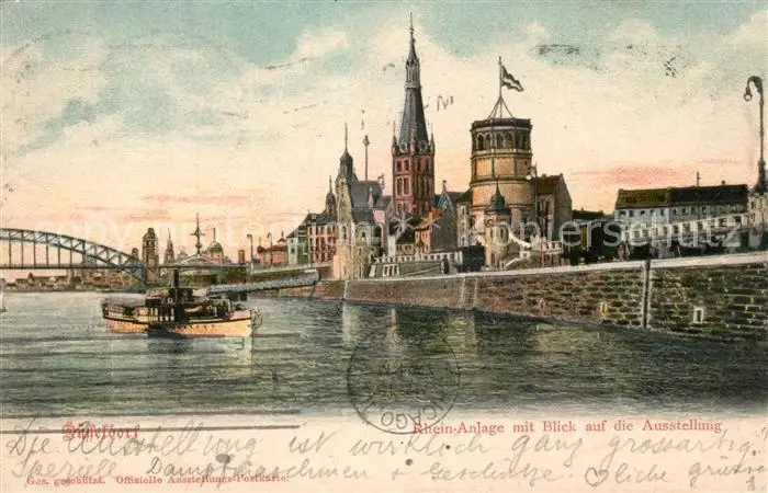 Duesseldorf Rheinanlage Blick auf die Ausstellung Dampfer Rheinbruecke Duesseldorf postalisch gelaufen 1902 Erhaltung siehe scans [FriedD77] Frierer