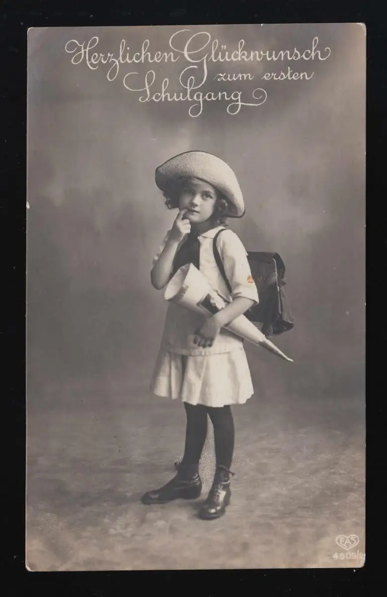EAS photo AK 4509/2 robe de fille, sac scolaire, ranzen, chapeau, Grossröhrsdorf 27.4.10