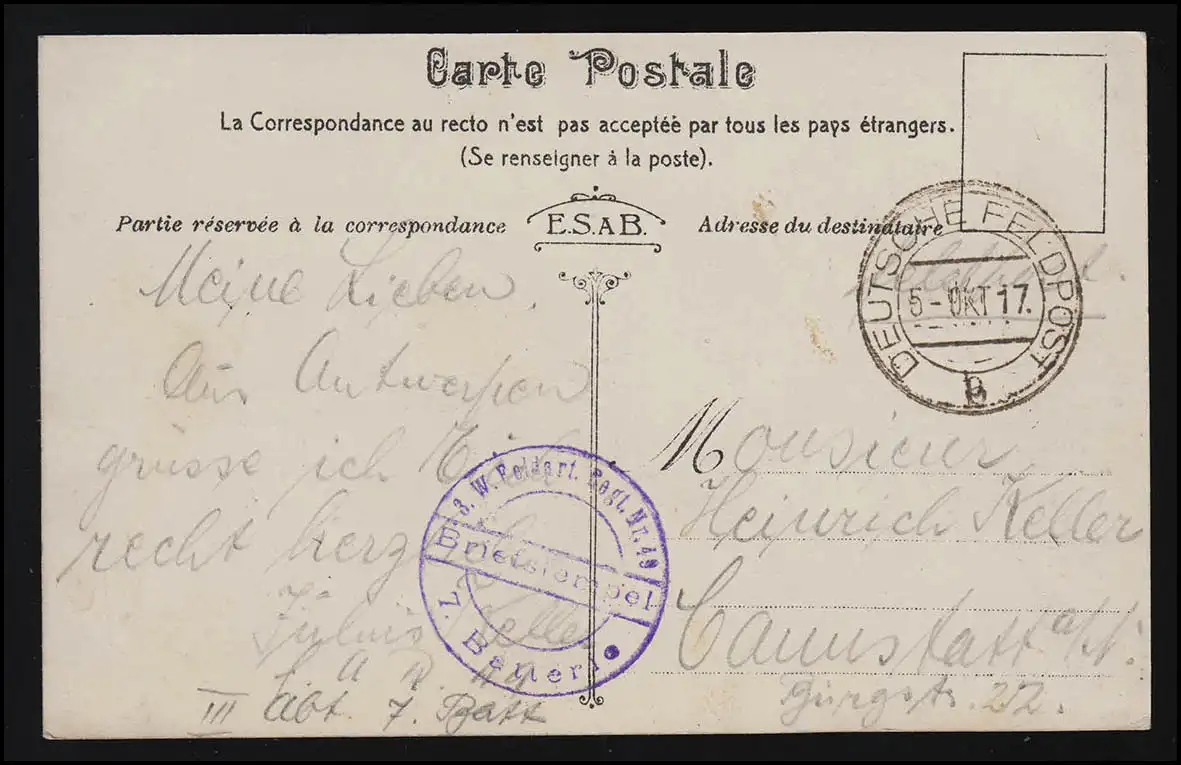 ESAB AK ANTWERPEN Vlotbrug Museum Burg Steen Schelde Deutsche Feldpost 5.10.17