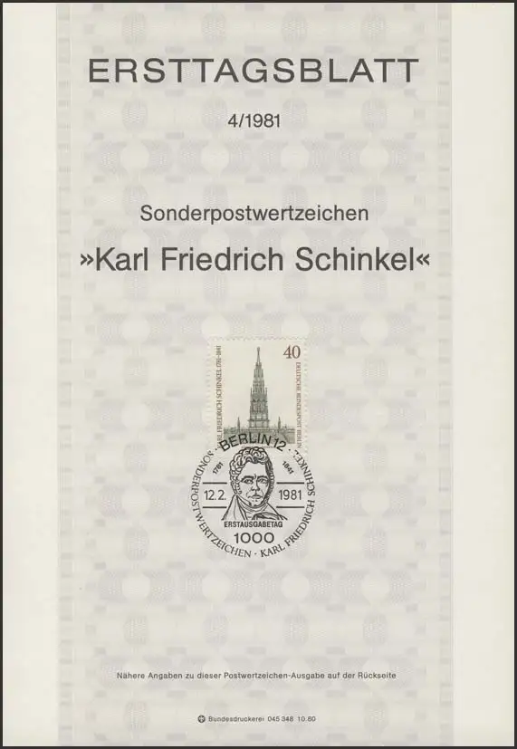 ETB 04/1981 Karl Friedrich Schinkel, Baumeister