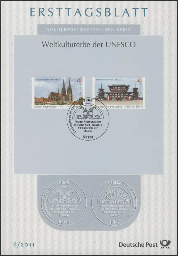 ETB 06/2011 UNESCO - Vieille ville de Ratisbonne, avec édition communautaire Nara, Japon