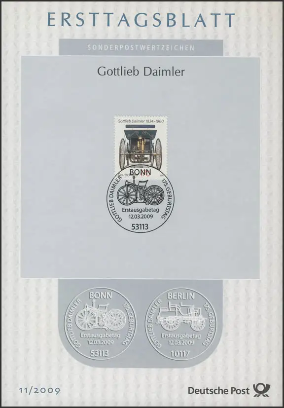 ETB 11/2009 Gottlieb Daimler, ingénieur, chariot à roues en acier