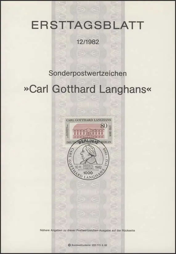 ETB 12/1982 Carl Gotthard Langhans, Baumeister