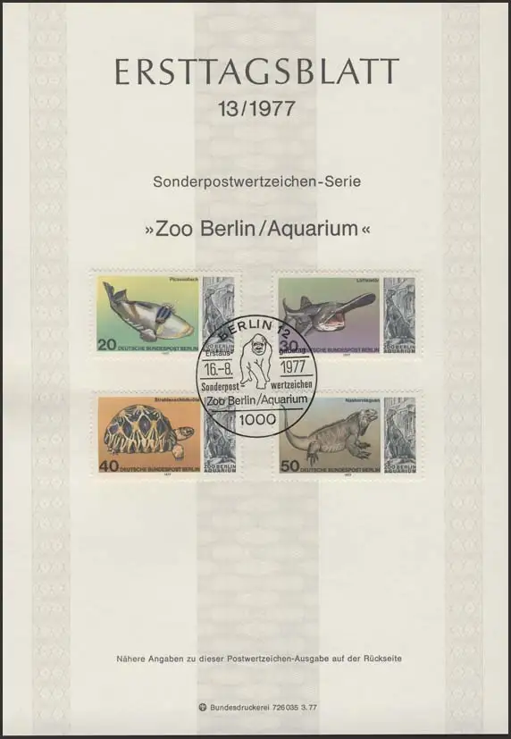ETB 13/1977 Aquarium Zoo de Berlin, Picassopoisson, Storm, tortue, iguane