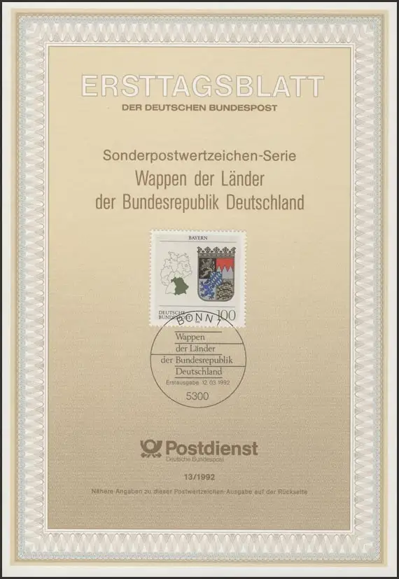 ETB 13/1992 Armoiries des Länder: Bavière
