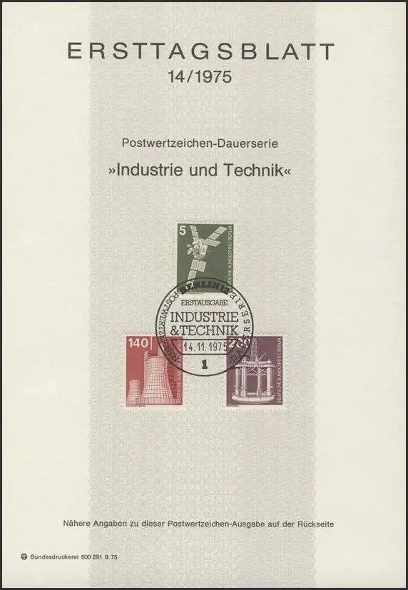 ETB 14/1975 IuT, satellite de presse, centrale thermique, île de forage