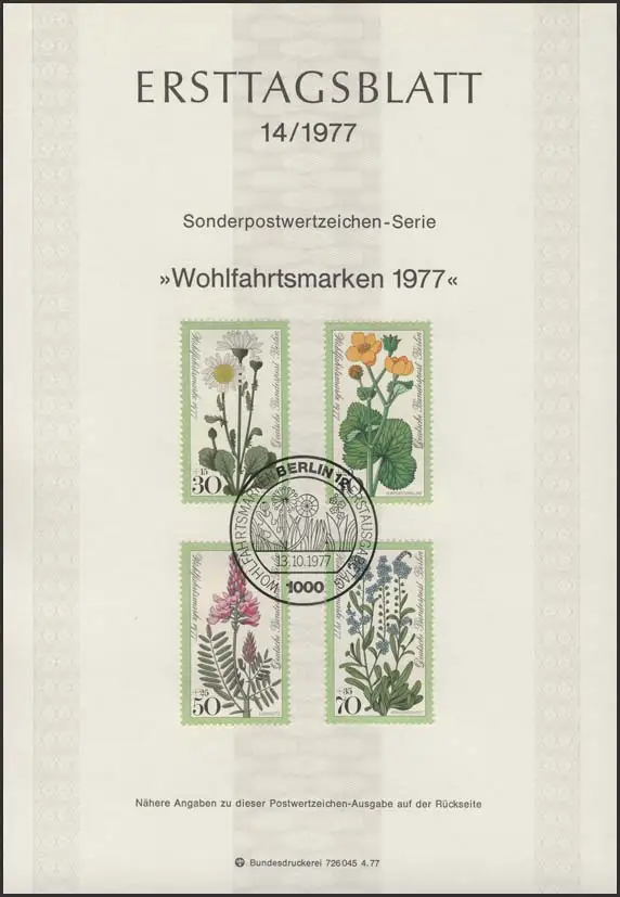 ETB 14/1977 Wofa, Fleurs de prés, Margerite, Marguerite, N'oubliez pas
