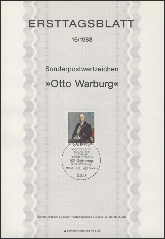 ETB 16/1983 Otto Warburg, chimiste
