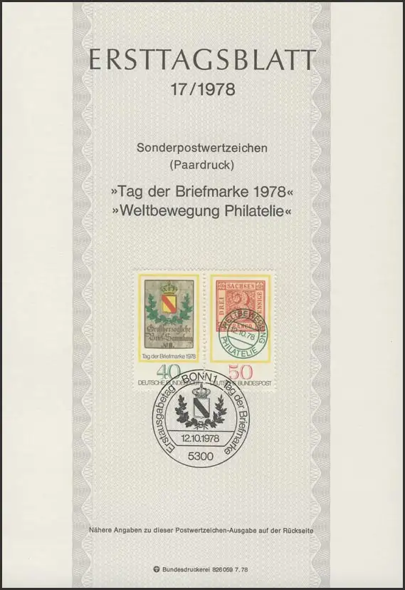 ETB 17/1978 Journée du timbre, Mouvement mondial Philatelie