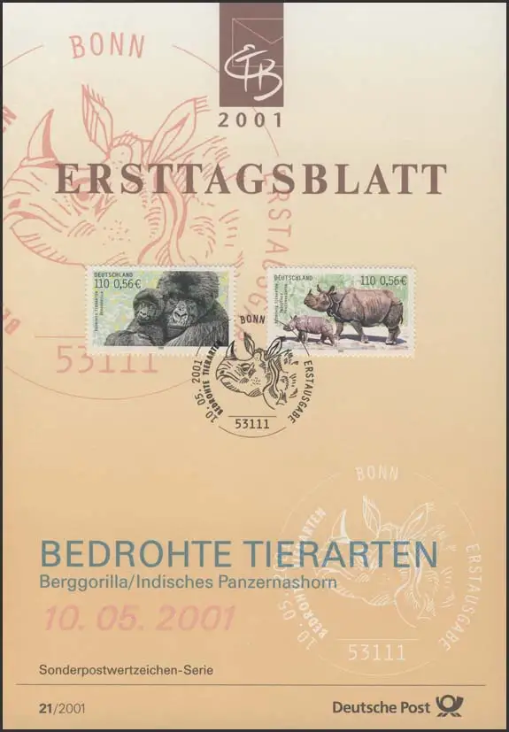 ETB 21/2001 Espèces animales menacées, gorille, rhinocéros