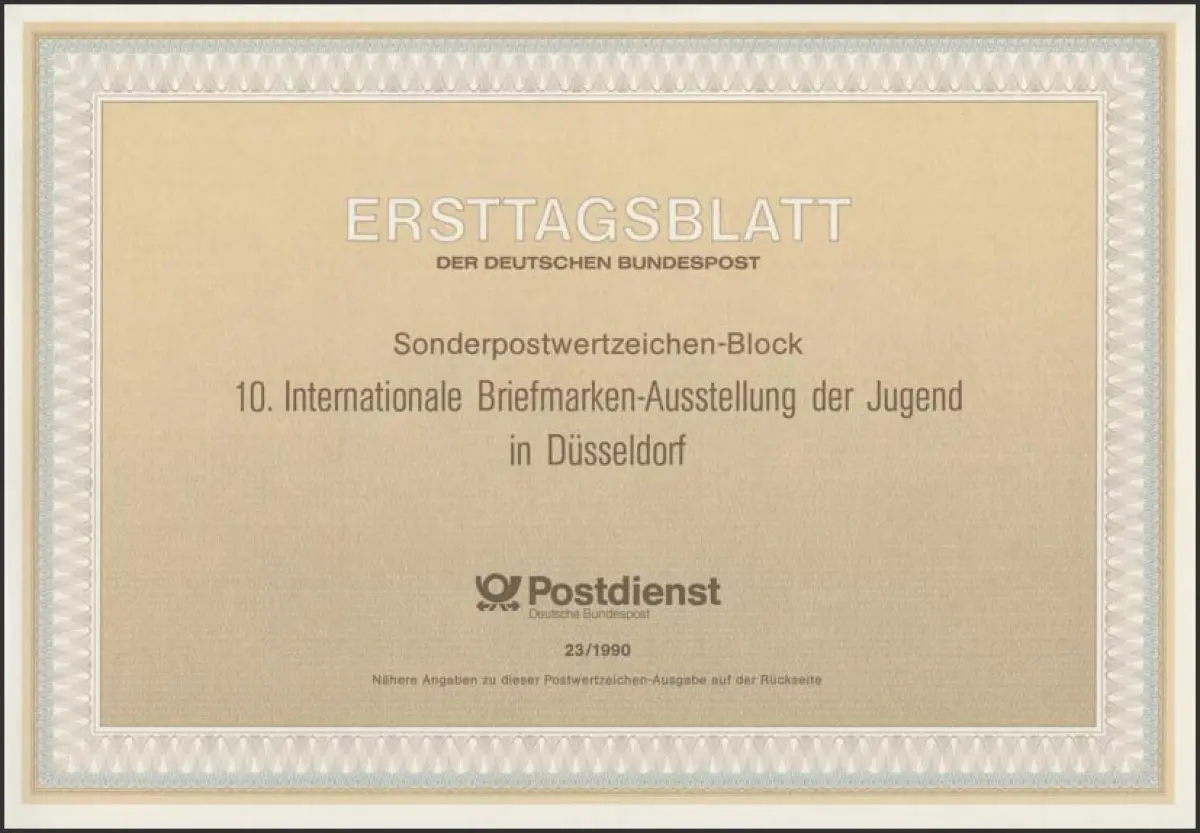 ETB 23/1990 avec bloc pour l'exposition des timbres de la jeunesse à Düsseldorf