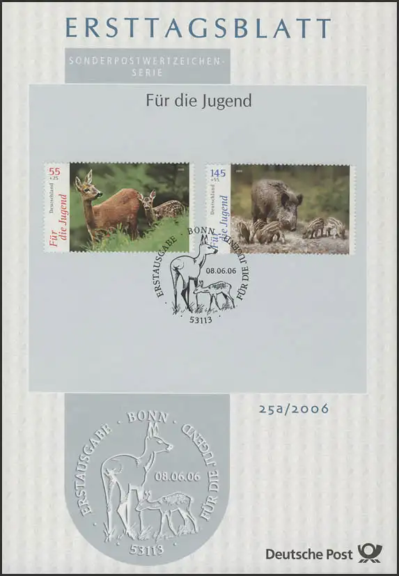 ETB 25+25a/2006 Jeunesse, Animaux domestiques, Reh, Lièvre, Marder - 5 valeurs sur 2 ETb