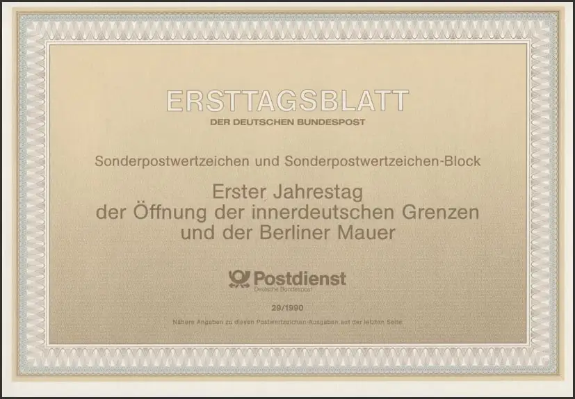 ETB 29/1990 Bloc: Ouverture des frontières, Mur de Berlin