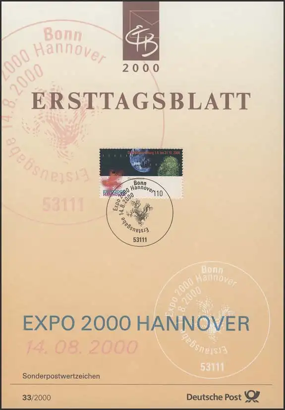 ETB 33/2000 EXPO 2000, empreinte digitale