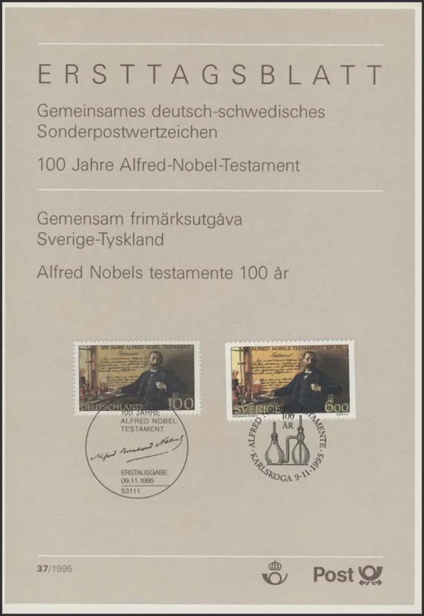 ETB 37/1995 Alfred Nobel, Testament, chimiste