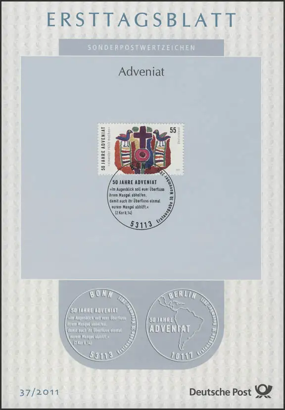 ETB 37/2011 Adveniat, croix, oiseau, fleur