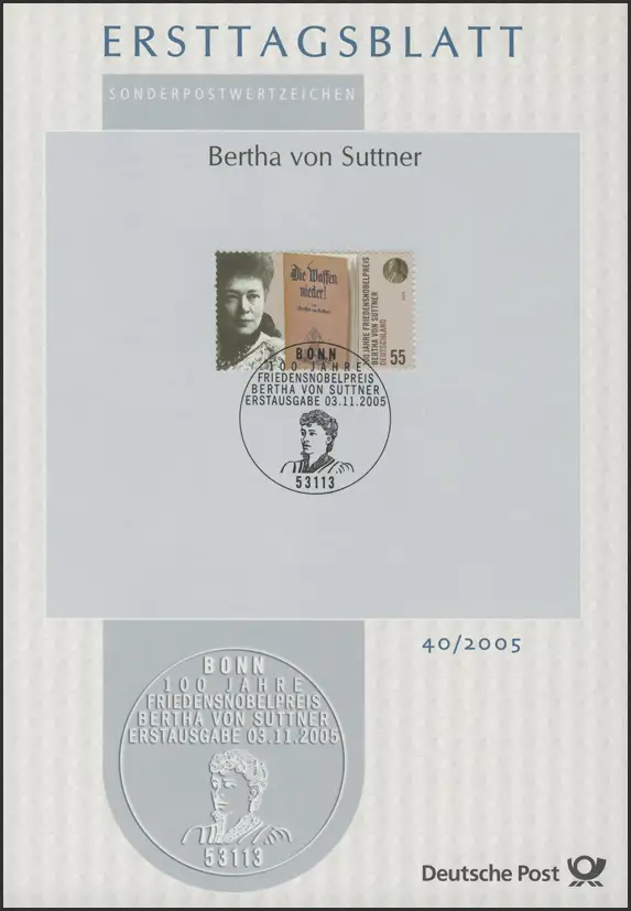ETB 40/2005 Bertha Freitfrau von Suttner, écrivain, pacifiste