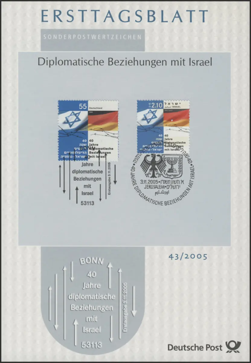 ETB 43/2005 Diplomatische Beziehungen mit Israel, beide Gemeinschaftsausgaben