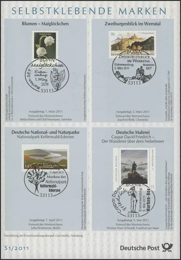 Loriot, UNESCO Vieille ville de Ratisbonne, Post - Bateau et arc-en-ciel, Fleurs - Maigloeckchen, Vue sur les deux-mâts dans la vallée de Werratal, Parc national de Kellerwald-Edersee, Caspar David Friedrich N° de catalogue: 2843ff. Examen: original Référence produit: 50200201138601>p>Attention: Cet article est ou a été disponible plusieurs fois. La figure montre l'un de ces articles en un exemplaire. Si la marque fournie possède uniquement les caractéristiques indiquées dans le descriptif et peut donc différer de l ' image. Toutefois, en particulier pour les marques marquées, nous nous essayons de fournir l\'article représenté.